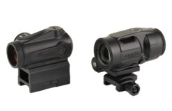 The JULIET3 is a 3-power magnifier designed to work specifically with the ROMEO-MSR. Using a quick button press release system, JULIET3 can be rolled out of the way for simple 1x magnification shooting, and just as quickly flipped back into position for more precise engagements using the enhanced magnification.