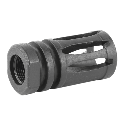 Upgrade your firearm with the Spike’s Tactical 5.56 Flash Hider, a tried-and-true accessory trusted by the U.S. Armed Forces. Based on the standard A2 bird cage design, this muzzle device is commonly found on M4/M16 and many AR-15 rifles, owing to its excellent performance in minimizing muzzle flash. This flash hider, finished with a heavy phosphate coating, not only ensures reduced visibility of the muzzle flash but also provides excellent resistance to wear and corrosion, making it a durable, reliable addition to your firearm. This flash hider includes a Mil-spec crush washer to aid in correct alignment during installation. A 1/2×28 thread pitch ensures easy and secure installation on your firearm.
