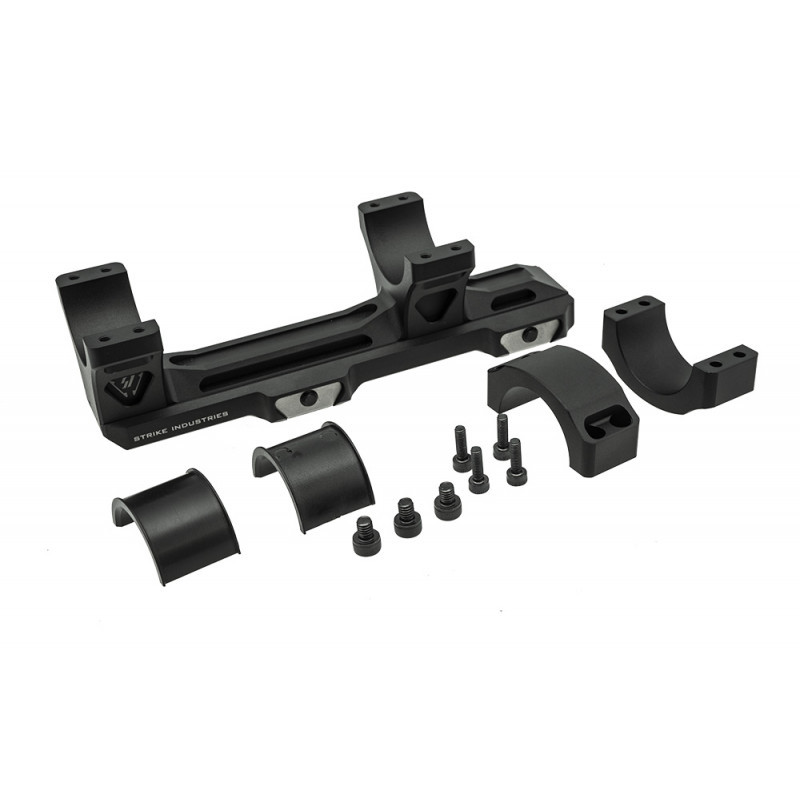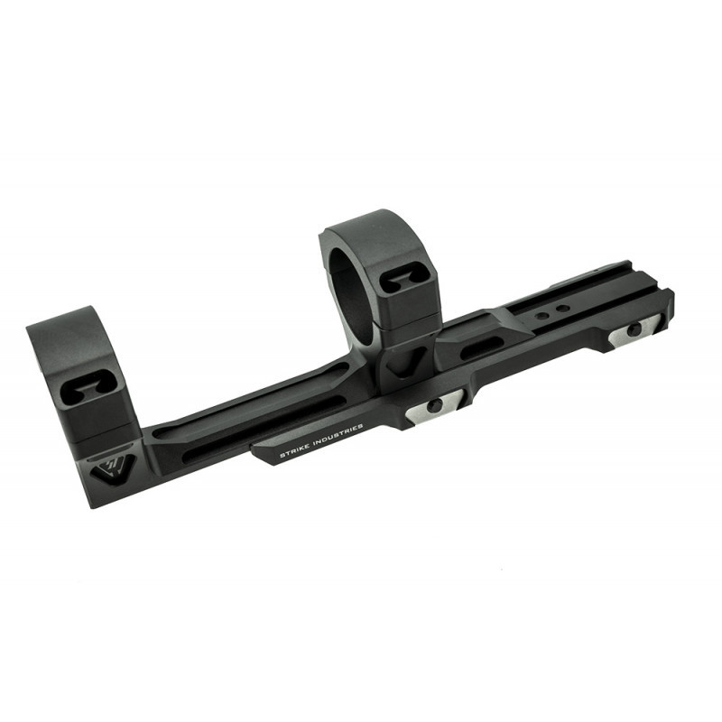 The Strike Industries Adjustable Scope Mount combines four different eye-reliefs into one scope mount. This scope mount can be adjusted to three standard eye-relief positions and one new eye relief position: extended, intermediate extended, and hyperextended. This scope mount is CNC machined from 7250 aluminum and hard anodized in black. Intended for use with Picatinny Rail Section Rifles. The versatility of the Strike Adjustable Scope Mount allows users to adjust the scope away from the shooter or more towards the shooter’s eye when mounted in reverse, creating flexibility for eye relief.