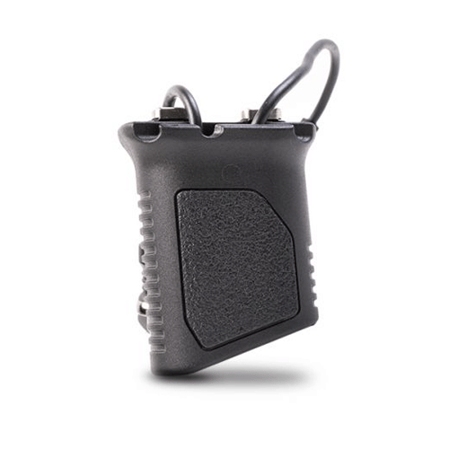 The Strike Industries Angled Vertical Grip with Cable Management is engineered like no other grip on the market. The grip angle sits on the handguard at 86 degrees. Patent-pending SI cable management function enables you to organize and store excess wire from your weapon light or any other cabled accessories in multiple configurations. Instead of tucking wire wherever you can and using cable ties or tape to hold it down, the cable management feature provides a place to route and/or contain loose wire within the grip cavity. The side cuts at the top middle of the grip make it easier to attach the pressure switch. Compared to the Short version, the Long version adds a built-in stability feature when you place the L-shaped bottom on a table edge/corner, or as a barricade stop, giving you another way to get back on target faster downrange. The Short version can be mounted in either direction for your preferred setup, and its low profile helps minimize snags. The forward angle provides a more natural wrist angle and increased forearm rigidity. Designed with textured palm and finger areas with flat sides for positive handling and easier manipulation of the firearm. Made from durable and lightweight polymer compatible with M-LOK rails, the Strike Industries Angled Vertical Grip with Cable Management (Long) gives the shooter control while handling or firing the weapon, adds stability (Long) with table/edge corner or as a barricade stop, and is an innovative way to ensure total cable management—no messy wires.