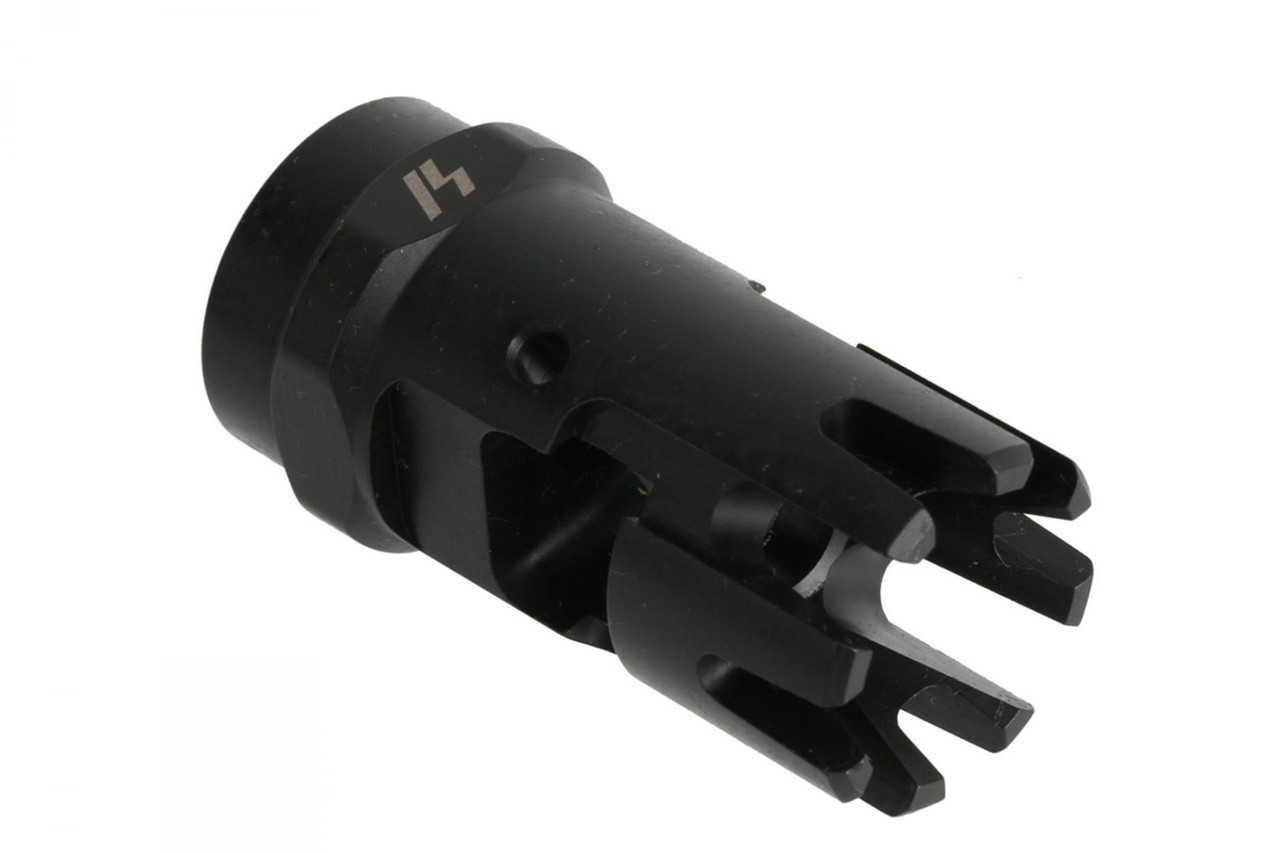 The Checkmate Comp is a top quality, multifunctional muzzle instrument that is designed with a series of four off-set serrated angled prongs which stabilize climb and recoil. The top port set to the right, benefits right-hand shooters with minimizing excessive climb. The aggressive front is an added feature that makes sure no one gets too close. The parkerized steel, design, and detail attest to the quality that SI continues to provide. The Check Mate is sure to dish out the maximum amount of royal pain!