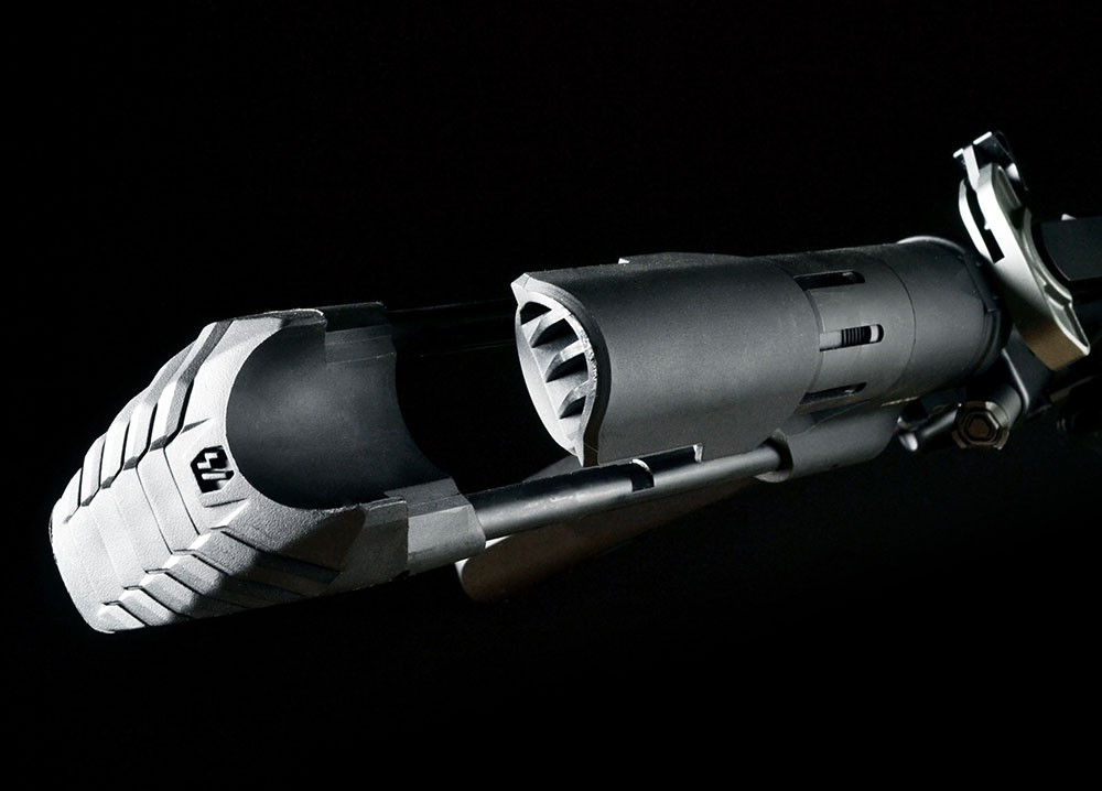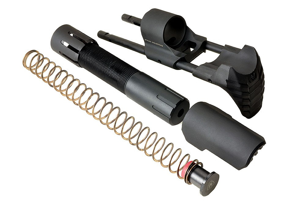 In addition to mechanical reliability and performance, we at Strike Industries have also paid close attention to human factors to increase comfort and controllability. The low footprint shoulder weld is shaped to conform to the shoulder pocket for maximum stability and control even in compromised or unconventional shooting positions. Included with the PDW is a rubberized cheek rest to create a comfortable cheek weld, a criticism of many competitor PDW systems.