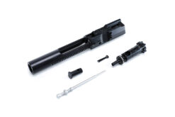 The bolt is CNC machined from heavy-duty 9310 alloy steel. 9310 steel has a high core & fatigue strength rating, a high hardenability rating, and, when properly treated, is about 7% stronger than the “mil-spec” Carpenter 158 steel. The bolt is shot peened (stress relieved) and finished with the same Black Nitride finish as the carrier. The bolt also comes completely assembled, with mil-spec gas rings and a high-tensile 4140 steel extractor. The bolt is also Magnetic Particle Inspected (MPI) for quality assurance.