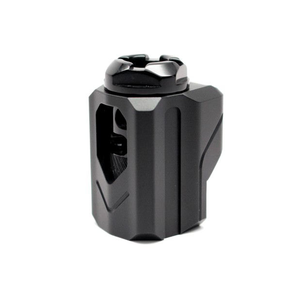 The Uni-Comp dramatically reduces muzzle rise and sensed recoil, allowing much quicker target re-acquisition. Compatible with ½-28 threaded barrels our compensator requires no modification to your 9mm firearm. The Uni-Comp works on almost any grain ammunition, and maintains a very small profile to help aid against printing for concealed carriers.