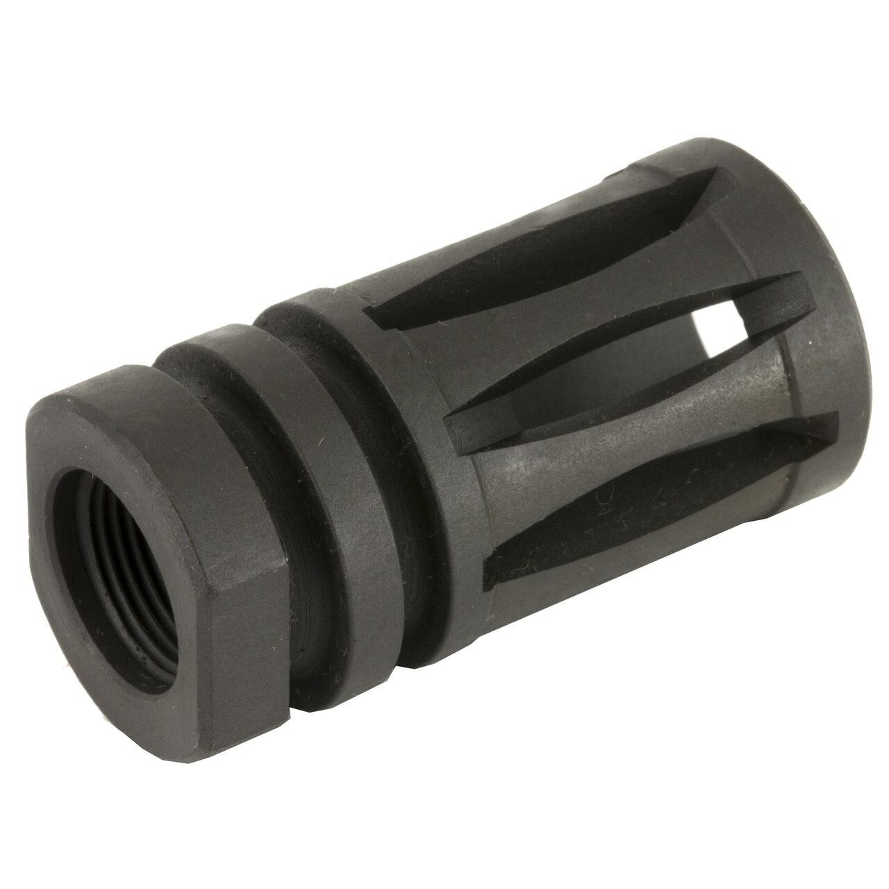 Standard A2 style flash hider with a 1/2″-28 UNEF thread. The flash hider is of alloy steel construction with a matte black coat and manganese phosphate surface treatment.