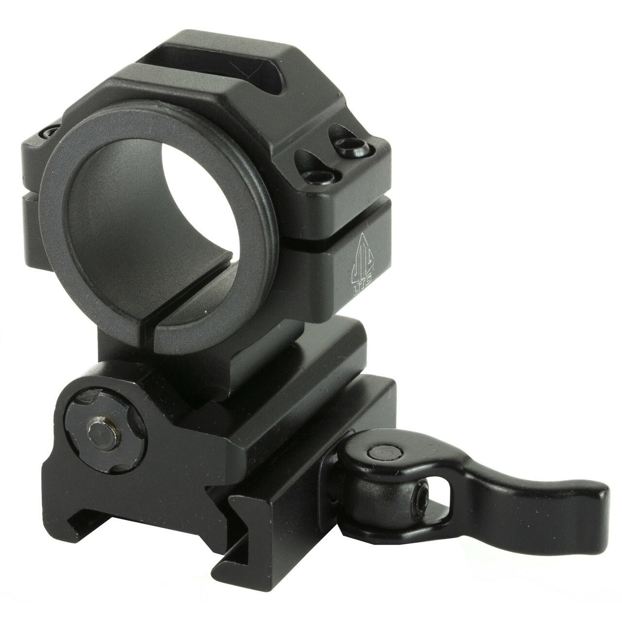 The UTG flip-to-side, Picatinny/Weaver QD ring mount is a patented, innovative design that allows target acquisition at varying distances and provides a flexible position for accessories. It is precision-machined from aircraft-grade aluminum alloy with anodized black matte finish, which fits magnifiers or other accessories with a 30mm tube diameter.