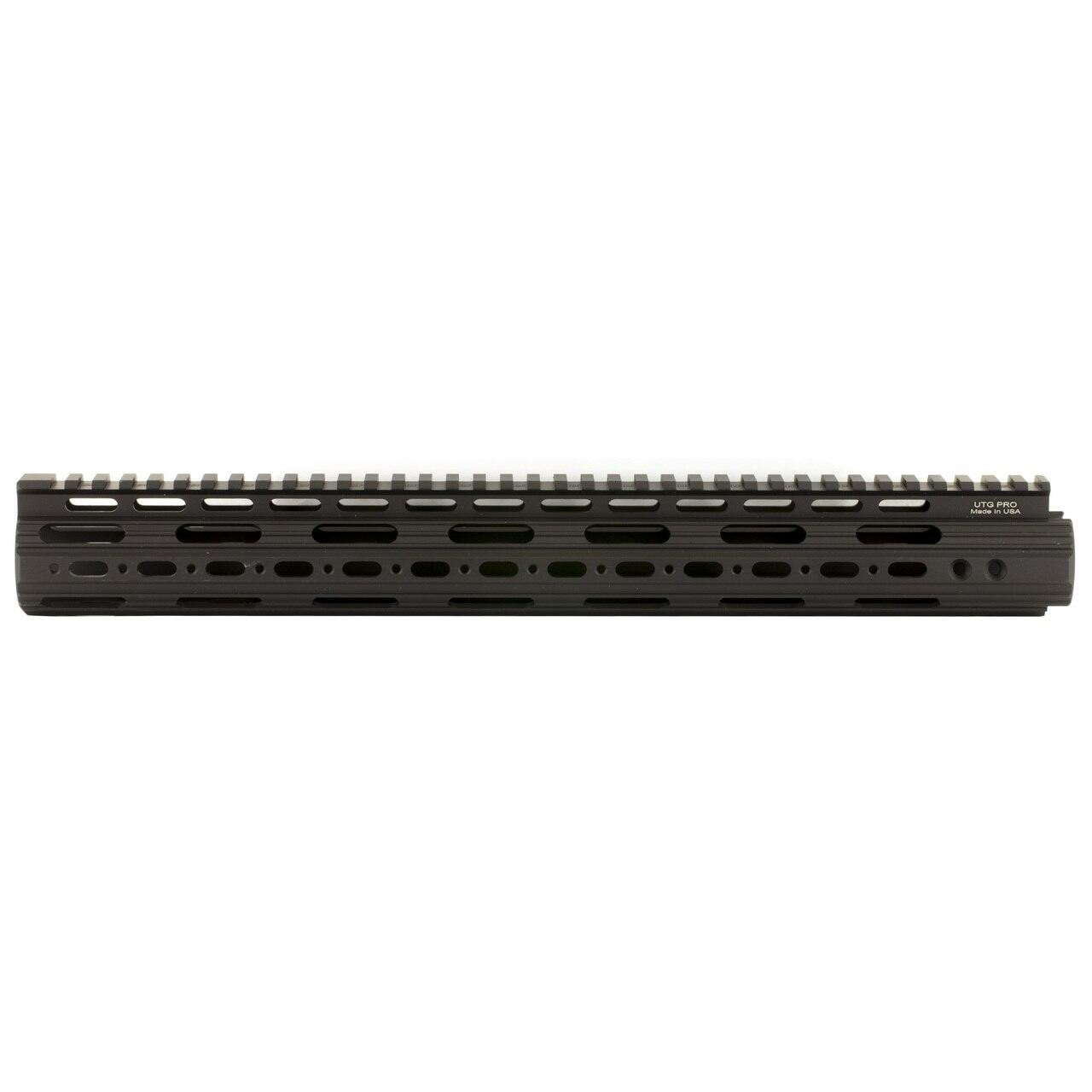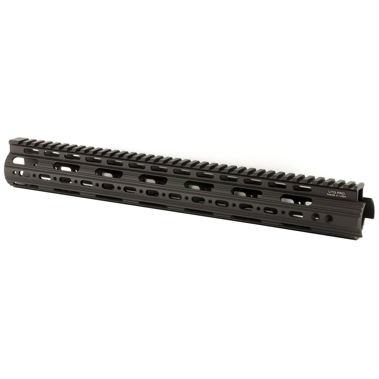 The UTG Pro model 4/15 rifle 15″ super slim free float handguard has a proprietary attachment design and an extremely compact profile. It is super lightweight with a rail at the 12 o’clock position that forms a continuous picatinny top section. It includes three user detachable 2-slot rail sections.