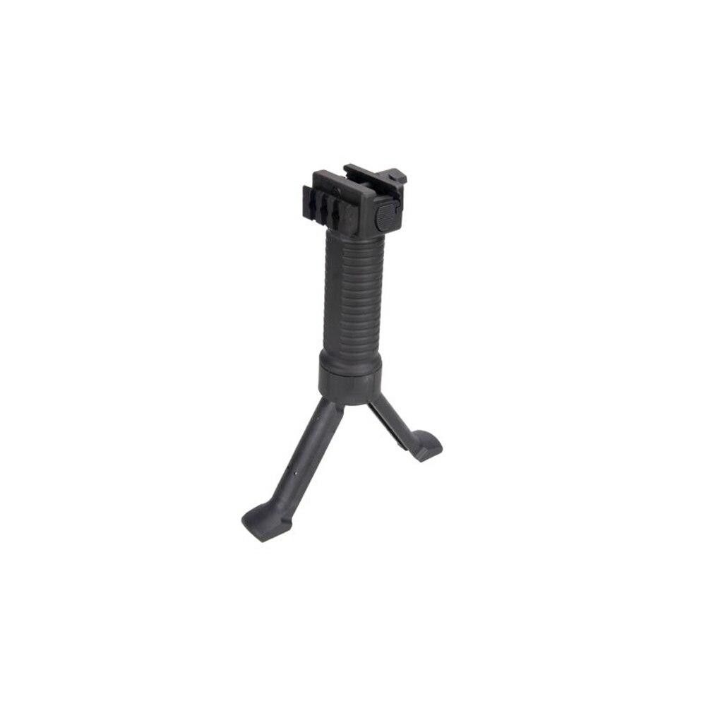 This Bipod grip is a durable, American-made AR15 accessory that combines the enhanced maneuverability of a vertical grip with an integrated quick-deploy bipod for long-range shooting. The Bipod Grip also features an integrated Picatinny rail section for mounting accessories such as a flashlight. Constructed from a durable polymer composite material, this unit is designed to last even in the most adverse conditions.