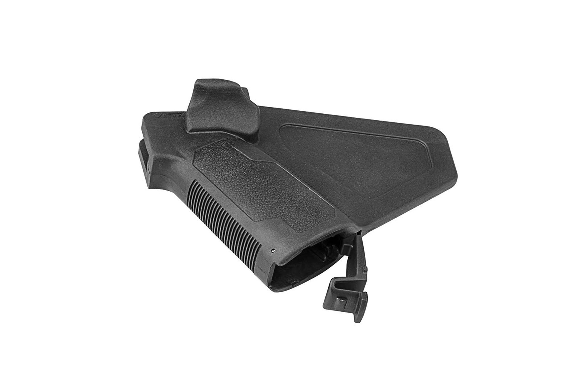 - Ambidextrous AR featureless grip with thumb shelves and in-grip storage. Designed for firearms that use AR pistol grips for featureless builds.