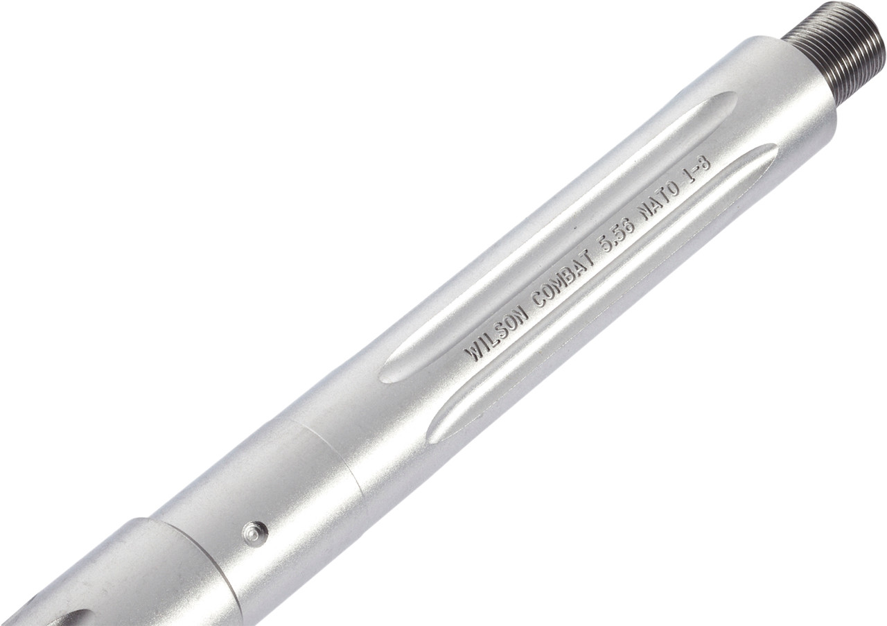 All Wilson Combat Match Grade AR-15 barrels are precisely crafted of the finest American-made 416R rifle rated steel on computer controlled equipment to our exacting list of technical specifications. These proven barrels feature a hand-polished bore and feedramps and then complete a rigorous final inspection process that ensures your new barrel will meet your most demanding expectations. All barrels feature crisp CNC markings, precision muzzle crown and a chamber and gas port optimized for reliability.