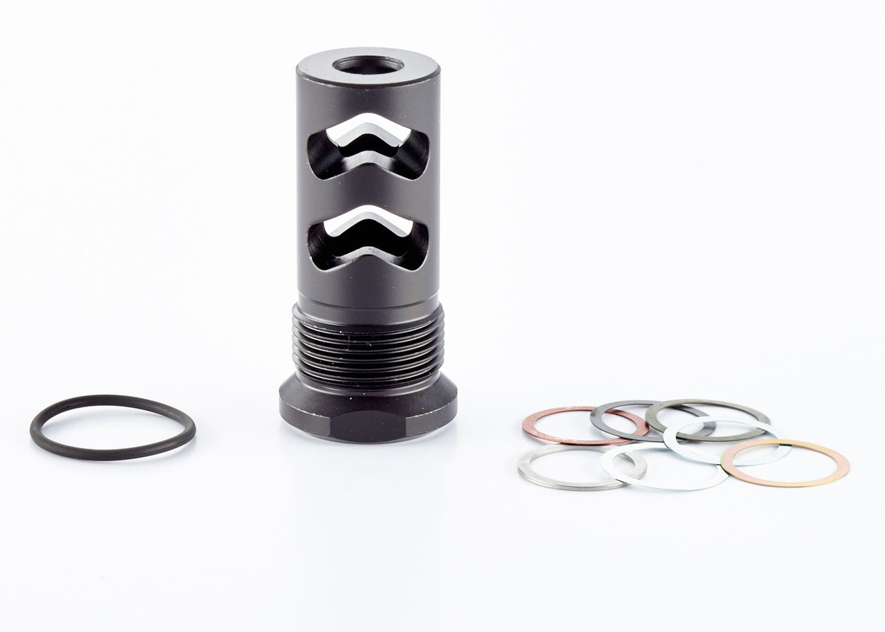 The Rapid-Thread Muzzle Brake comes with a complete shim set for proper timing on your rifle barrel threads and a rubber O-ring for use with the Whisper suppressor.