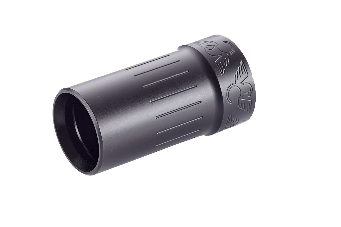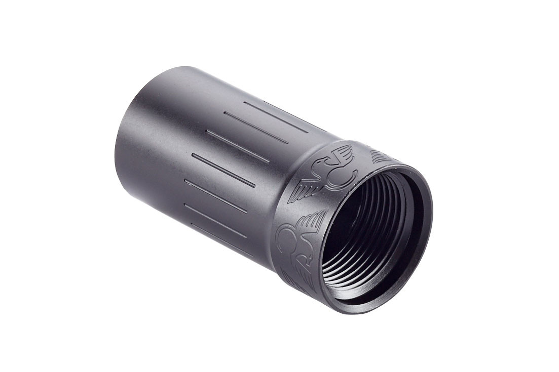 The Blast Diverter simply screws on to the brake’s external threads and directs noise and blast in front of and away from the shooter. This is a handy item to have when you want to minimize the concussion of muzzle blast to yourself and those around you. The rugged Melonited carbon steel construction will hold up to heavy use.